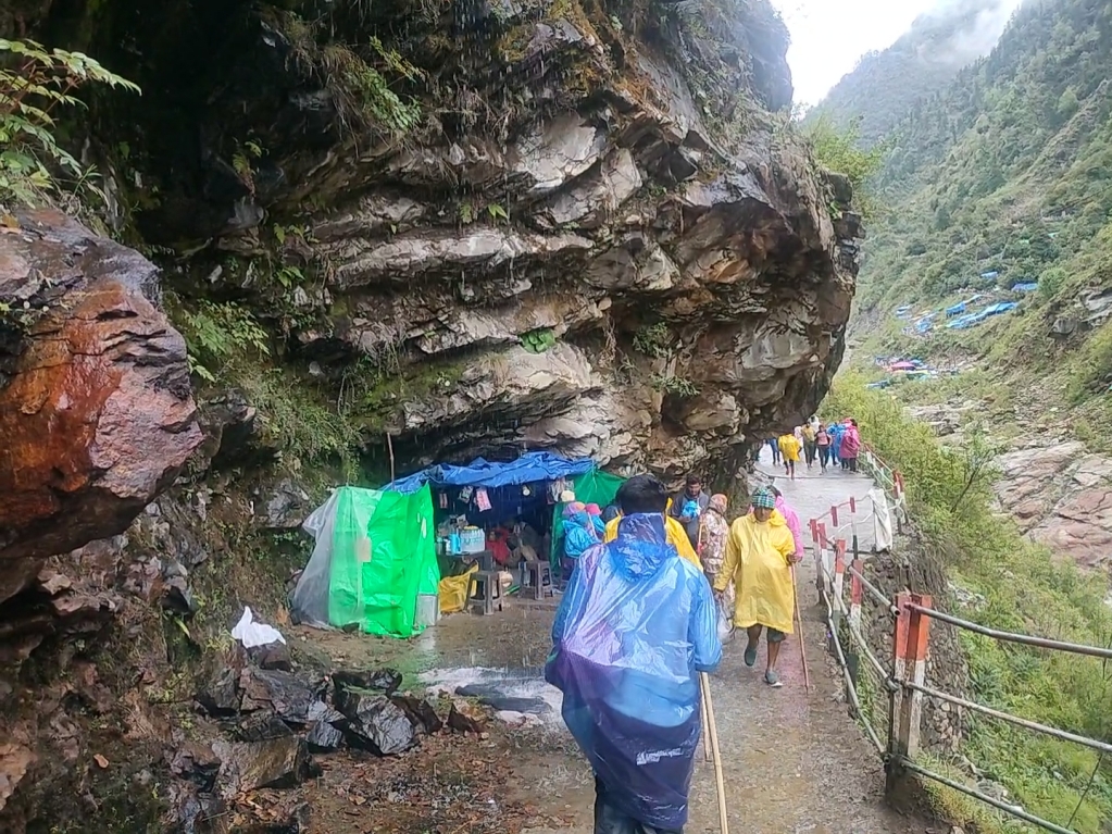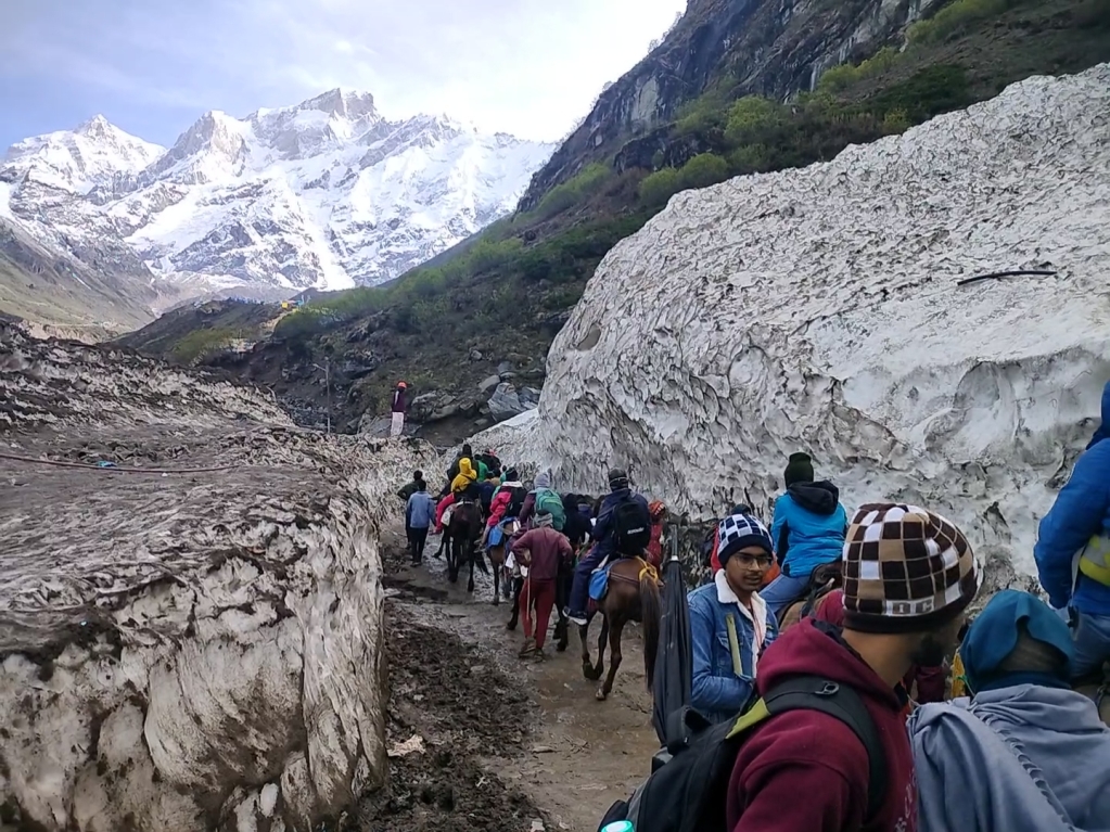 நல்ல ஓய்வுக்குப் பிறகு மே 25ம் தேதி காலை 5 மணிக்கே எழுந்து கேதார்நாத் யாத்திரைக்குக் கிளம்பினேன். கேதார்நாத் யாத்திரைக்கு இரவு பகலெல்லாம் கிடையாது. எந்நேரமும் மக்கள் சென்று கொண்டே இருப்பார்கள். இரண்டு மணி நேரம் வரிசையில் நின்று மந்தாகினி ஆற்றுப்பாலத்தைக் கடந்தேன். அங்கிருந்து 4 கிலோ மீட்டர் தொலைவில் இருக்கும் கௌரிகுந்த் வரை செல்ல ஜீப் வசதி உள்ளது. 50 ரூபாய்க்கட்டணத்தில் கௌரிகுந்த் கூட்டிச் செல்வார்கள். அங்கிருந்துதான் மலையேற்றம் தொடங்கும். கேதார்நாத் யாத்திரை 5 – 6 மாதங்கள் மட்டும்தான். ஆகவே சோன்ப்ரயாகிலும் சரி கௌரிகுந்திலும் சரி நிரந்தரமான கடைகள் மற்றும் வளாகங்களை விட தற்காலிகமாக எழுப்பப்படும் தகரக்கொட்டகையிலான கடைகளே அதிகமாக இருக்கும். சோன்ப்ரயாகைப் போலவே கௌரிகுந்திலும் தங்கும் விடுதிகளே அதிகம். அதைத்தாண்டி பெரும்பாலும் தகரத்தாலும், ப்ளாஸ்டிக் பாய்களாலும் அமைக்கப்பட்டிருக்கும் தற்காலிக உணவகங்கள், தேநீர் விடுதிகளே அதிகமாக இருக்கின்றன. ப்ளாஸ்டிக் தாளாலான ரெய்ன்கோட் குறைந்த விலையில் விற்கப்பட்டது. மலையேறும் பயணிகள் பெரும்பாலும் அதனை வாங்கிப் போட்டுக் கொண்டிருந்தனர். நான் ஜெர்க்கின் அணிந்திருந்தேன். ட்ராக் பேண்ட் அணிந்து ஜாகிங் போவதற்காக வாங்கிய ஷூவினை அணிந்திருந்தேன். ஜெர்க்கினே போதும் என நினைத்ததால் ரெயின் கோட் வாங்கவில்லை. மலையேற்றத்துக்குத் தாங்கிப் பிடித்துச் செல்ல மூங்கில் தடிகள் விற்பனை செய்யப்பட்டது. நான் ஒரு தடியை வாங்கிக் கொண்டேன். கௌரிகுந்தில் காலை உணவு சாப்பிட்டதும் 8 மணிக்கு முன்னதாகவே மலையேற்றத்தைத் தொடங்கினேன்.