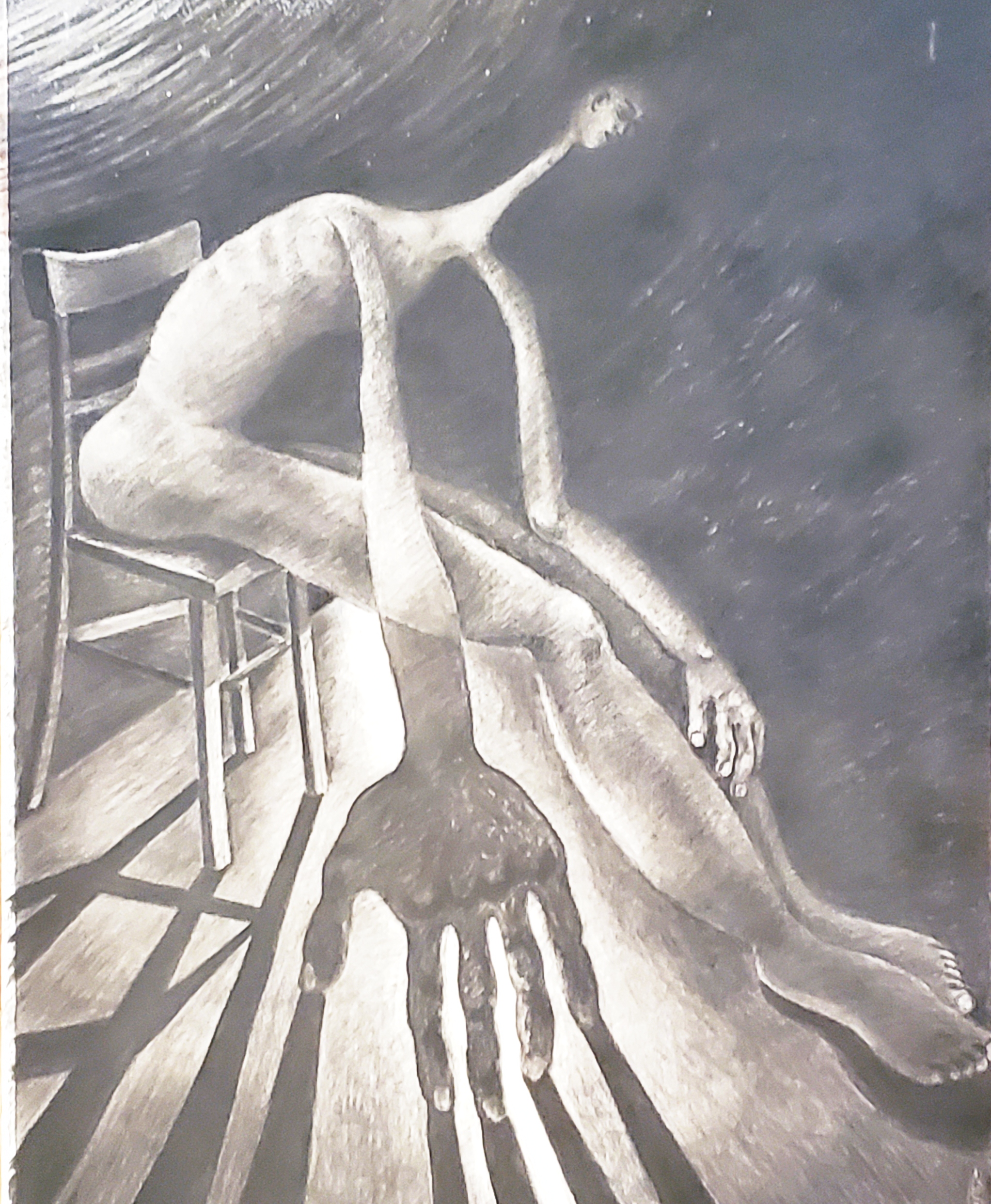 அவரின் செம்பட்டைப் பூத்திருந்த மயிர்கள் கலைந்திருந்தன; மூக்கு விடைத்திருக்க கண்கள் உதிரச் சிவப்பில் உள்ளன. அணிந்திருக்கும் சட்டையில் மேற்பட்டன்கள் இரண்டு இல்லை. மூன்றாவதும் உடைந்திருந்தது. வலப்பக்க கையின் கம்முக்கூட்டுப் பகுதி நைந்து கிழிந்திருந்தது. இரகசியங்கள் ஏதுமில்லை. ஊருக்கு உறவுக்கு என எல்லாவற்றையும் அழித்த கதை பொது. இழப்பதற்கு ஒன்றுமில்லை. ‘போதும்’ எனத் தோன்றியது கோபாலுக்கு.