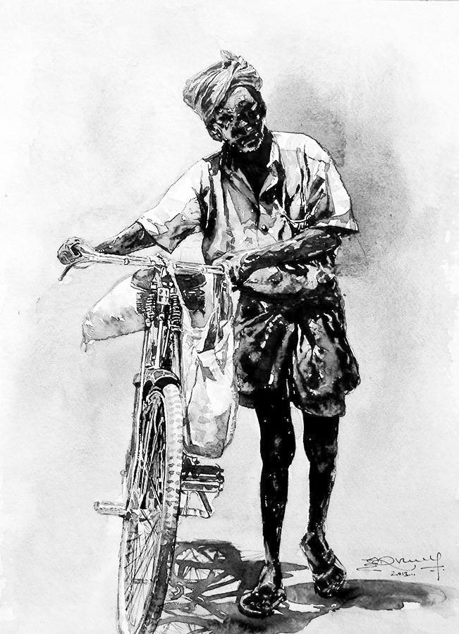 பார்ப்போர்களெல்லாம் ’ஒரு டிவிஎஸ் பைக்காவது வாங்கி இந்த வேலையை செய்யலாம்ல மாமா!’ என்றால் `அது எண்ணெய் ஊத்துனாத்தான ஓடும்? இது வருசம் ஒருக்கா டயர் மாத்தினா போதும் மாப்ளெ.. பஞ்சரானா கூட அவத்திக்கே உக்கோந்து ஒட்டீட்டு காத்தடிச்சுட்டு கிளம்பிடுவேன்! எவ்ளோ வசதி இது. இதையுட்டுட்டு பைக்கி வாங்கி ஓட்டி கட்டுபடியாவாது எனக்கு! அப்புறம் வருசம் ஒருக்கா சர்வீசுக்கு உட்டா சொளையா ரெண்டாயிரமாச்சிம் கையில இருக்கணும். அப்புறம் லைசென்சு வாங்கணும். வண்டிக்கி வருசத்திக்கி ஒருக்கா இன்சூரன்ஸ் கட்டணும். வழியில போலீஸ் கைகாட்டி ஒதுங்கச்சொன்னா ஒதுங்கி பதில் சொல்லணும்! என் சைக்கிளை யாரு நிறுத்தி செக் பண்ணுவாங்க?’ என்றே சொல்வார்.