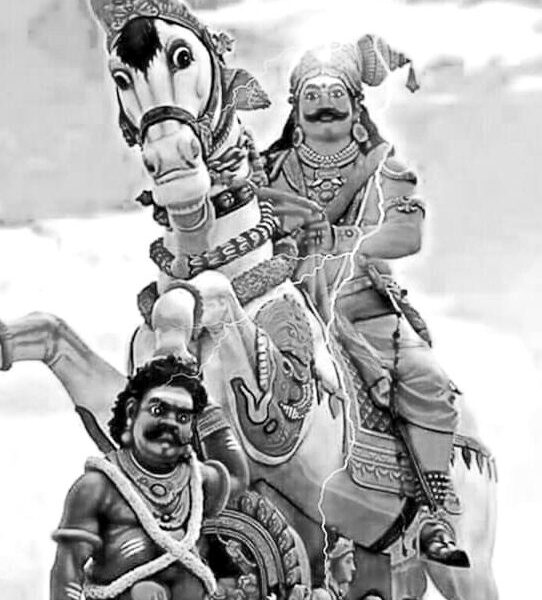 1. மூன்றடி உயரமுள்ள சிமெண்ட் திண்டின் மேல் ஆளுயர குதிரை மீது பெரிய திரண்ட கண்களுடன் அழுத்தம் திருத்தமாக வளைந்த